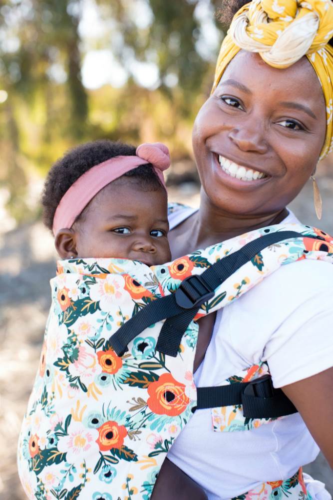 De Tula heeft een afneembaar hoofdkapje met drukknopen in hetzelfde ontwerp als de draagzak.